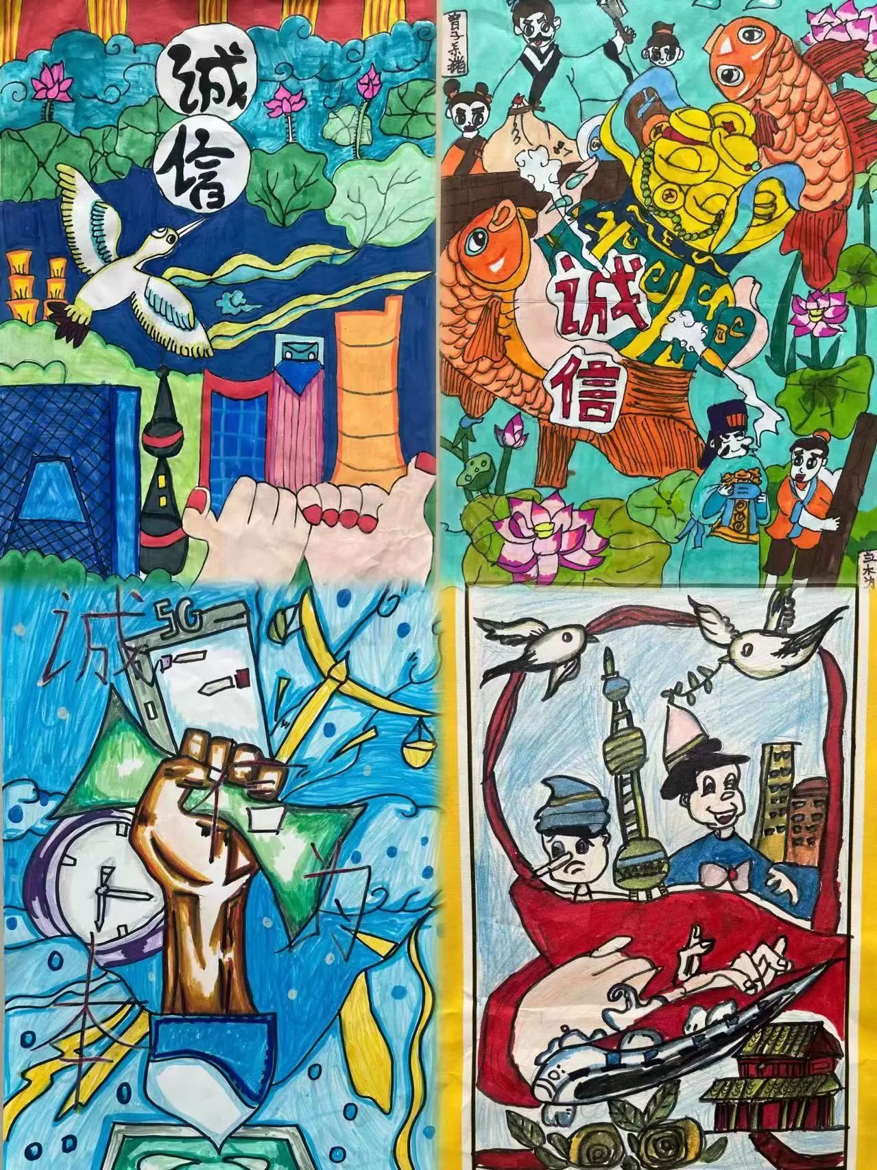 2.一、二年级举行以“诚实守信”为主题的绘画比赛。