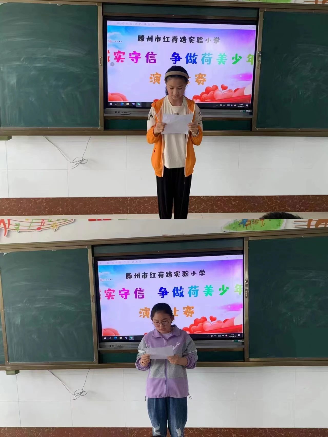 4.五、六年级举行“诚实守信 争做荷美少年”演讲比赛。
