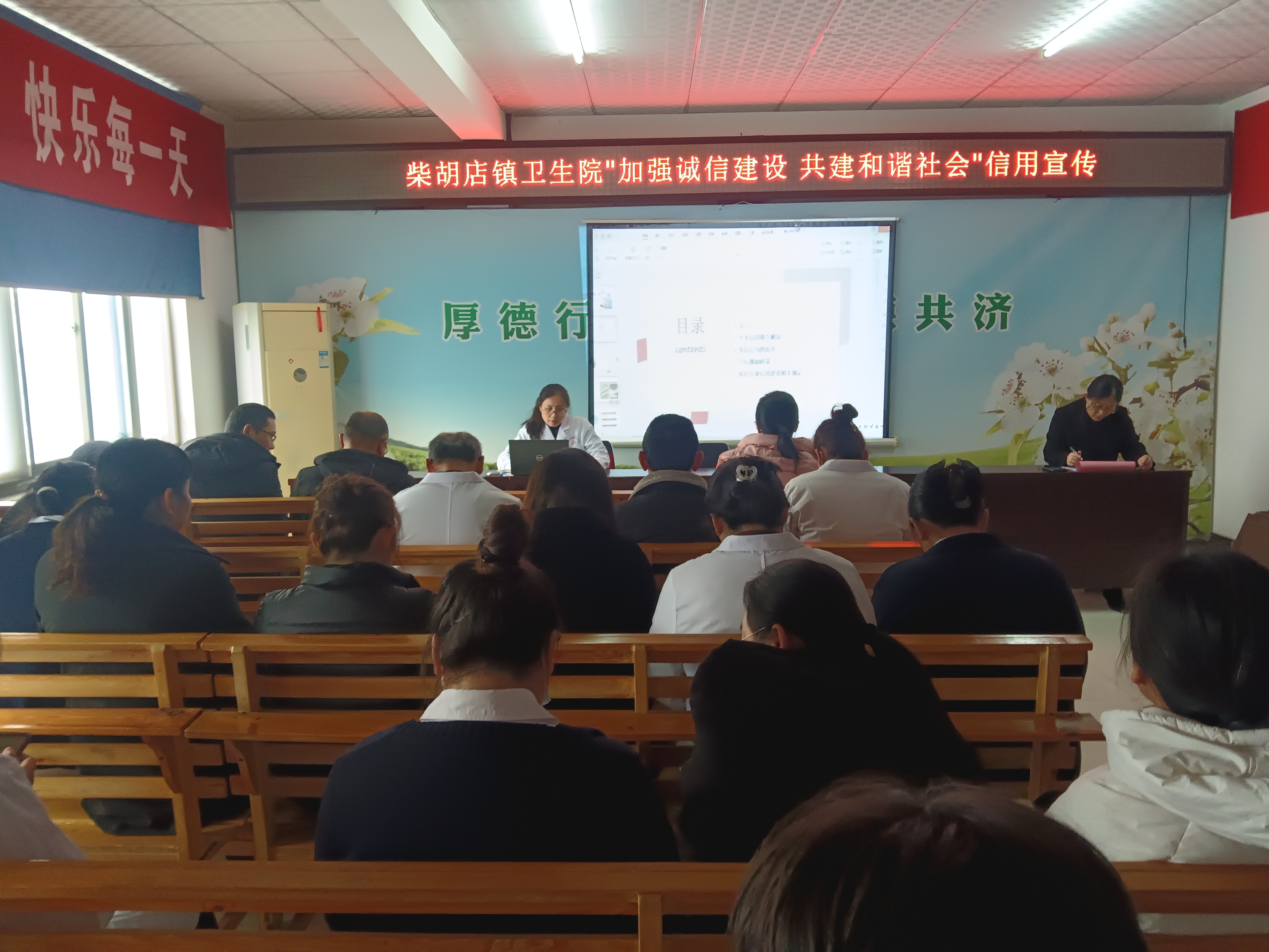 活动期间,卫生院首先组织全体职工召开了专题会议。会上,大家集中观看了信用建设相关PPT课件,深入学习了诚信在医疗卫生行业中的核心地位。会议强调,医务人员不仅要在业务上精益求精,更要在职业操守上坚守诚信底线,以实际行动维护医院的良好信誉和患者的切身利益。